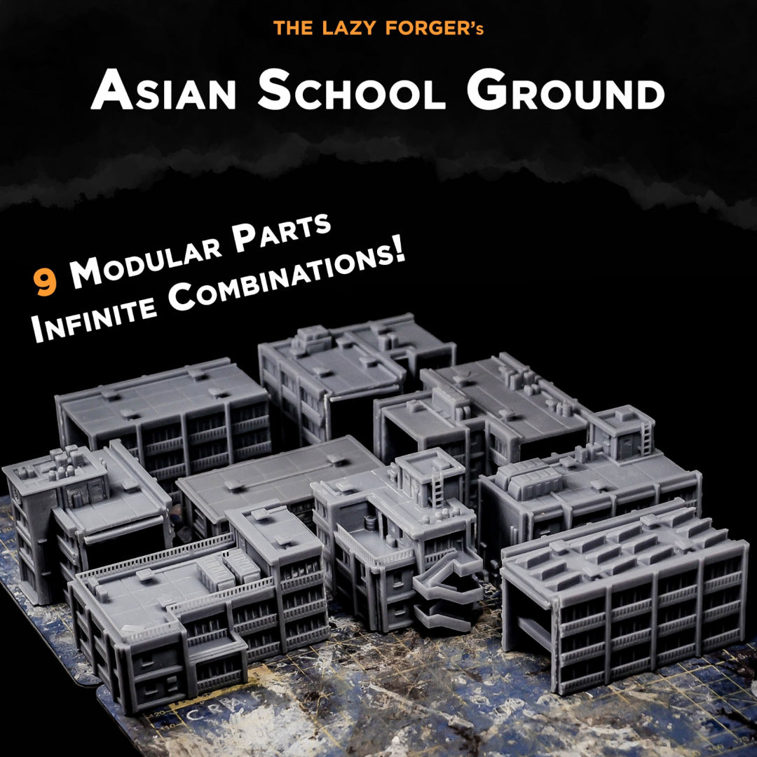 Asian School Grounds - Miniature Terrain Set (9 Buildings)