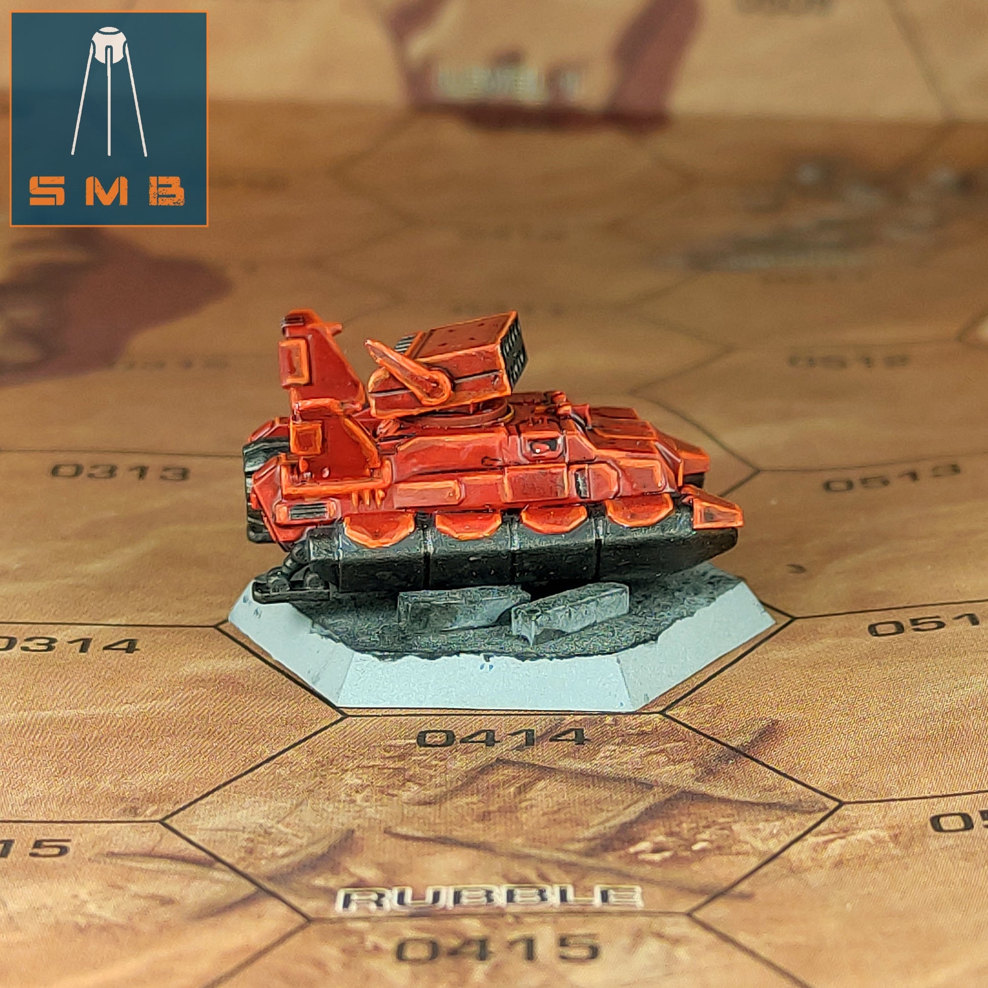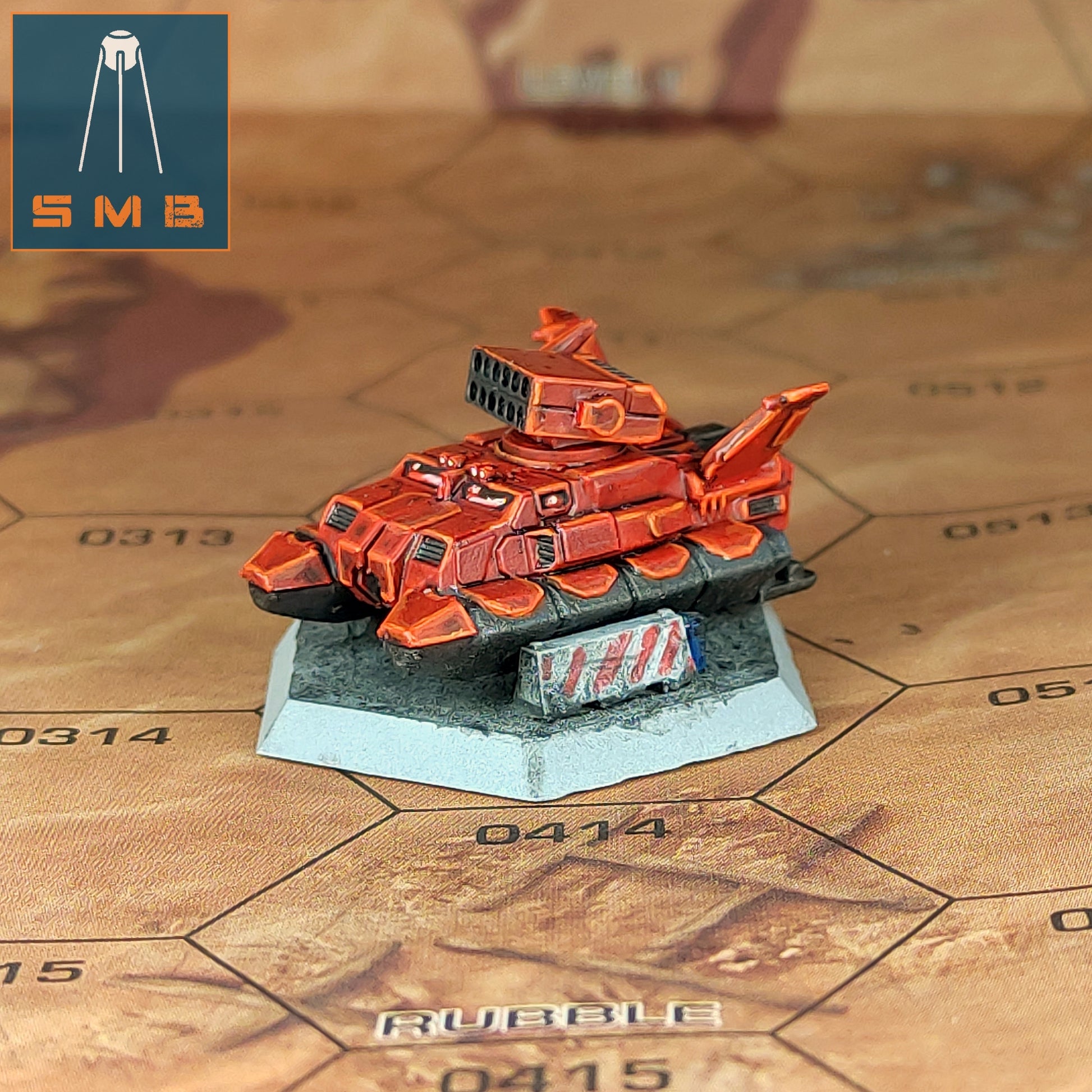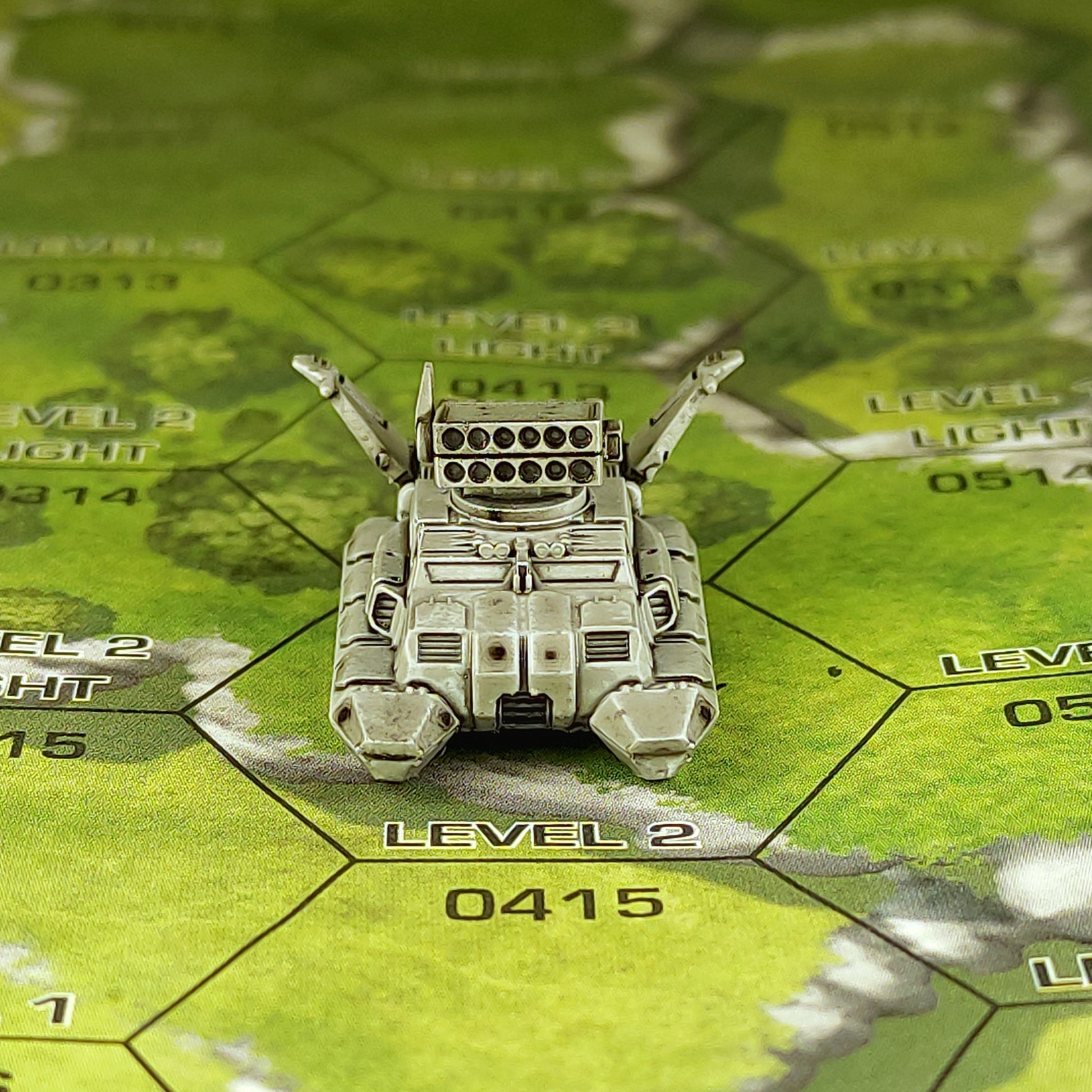 A model of a light hover tank for a board game.