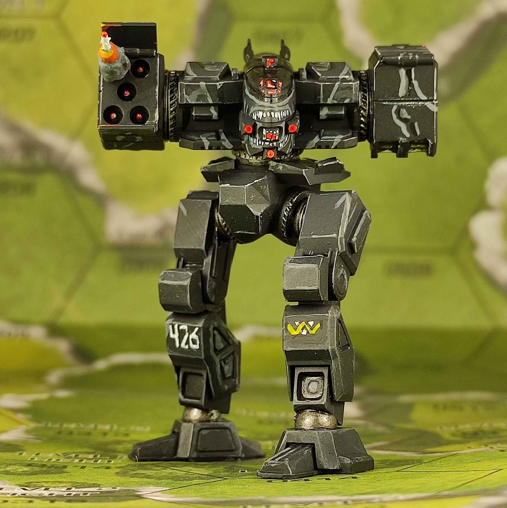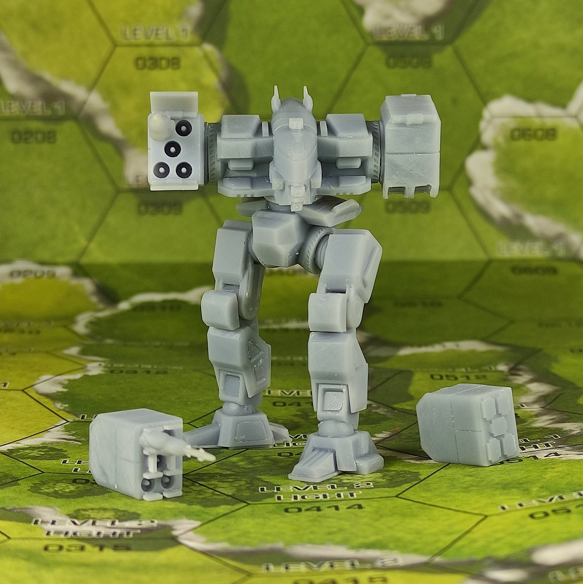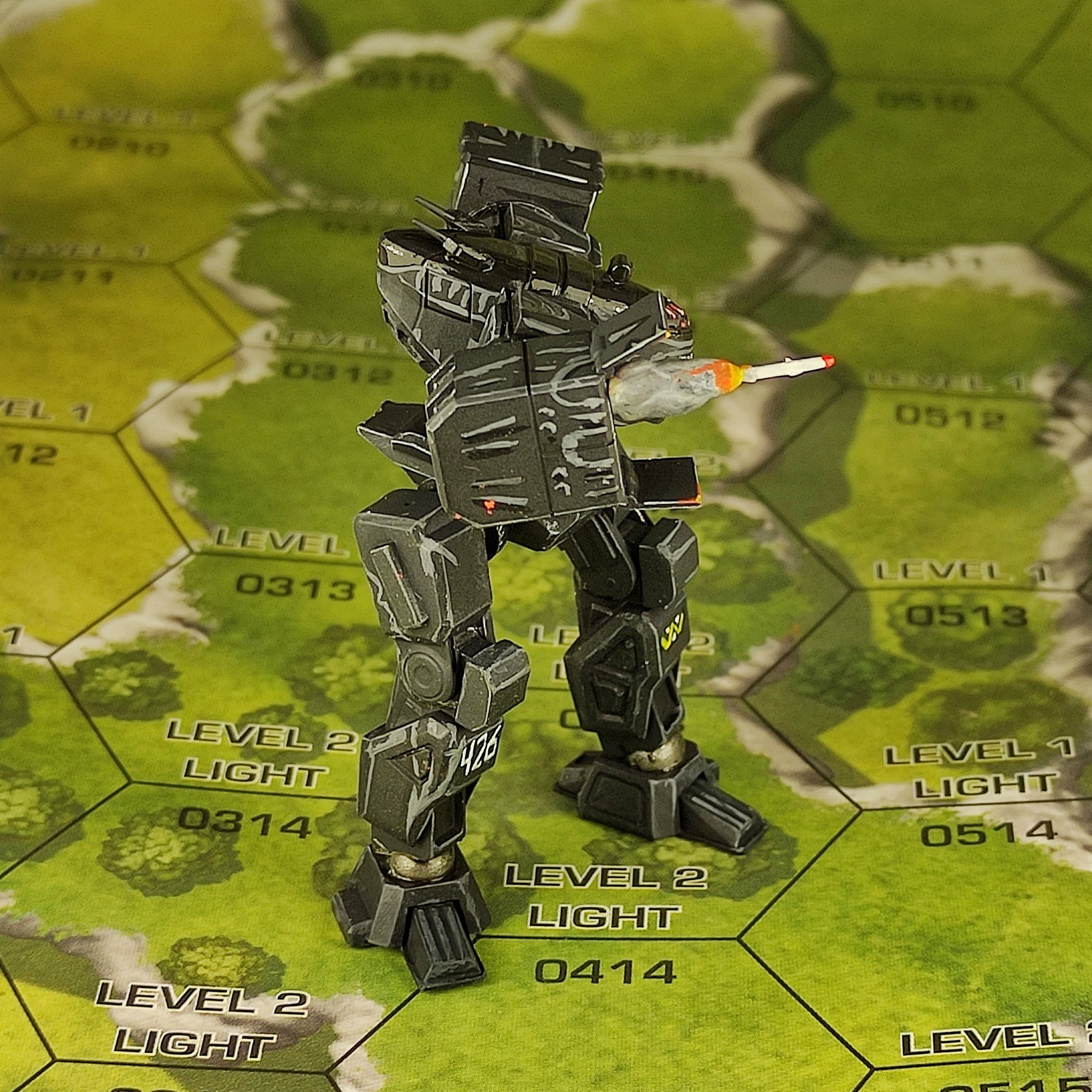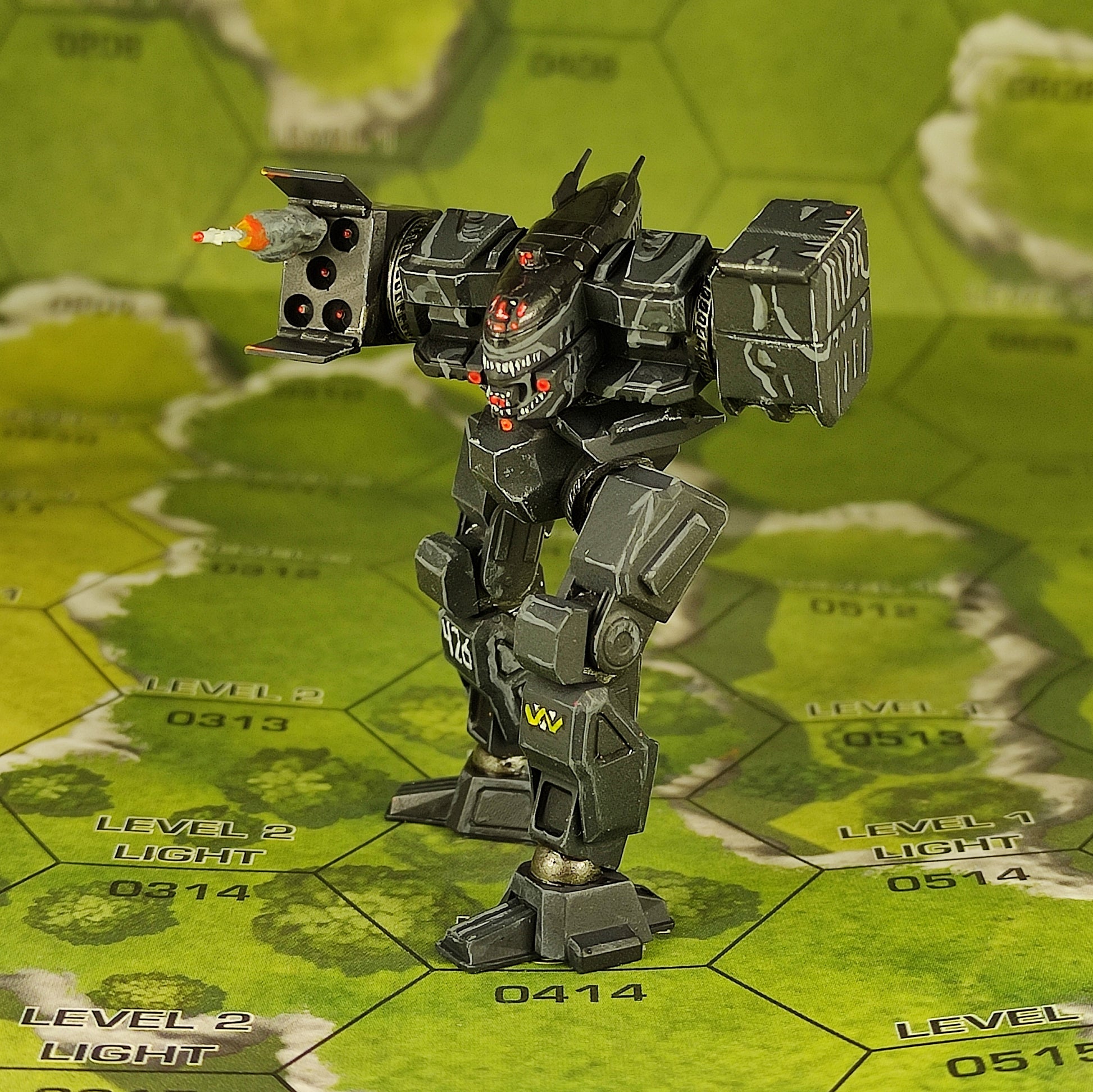 Assault mech model for a board game.